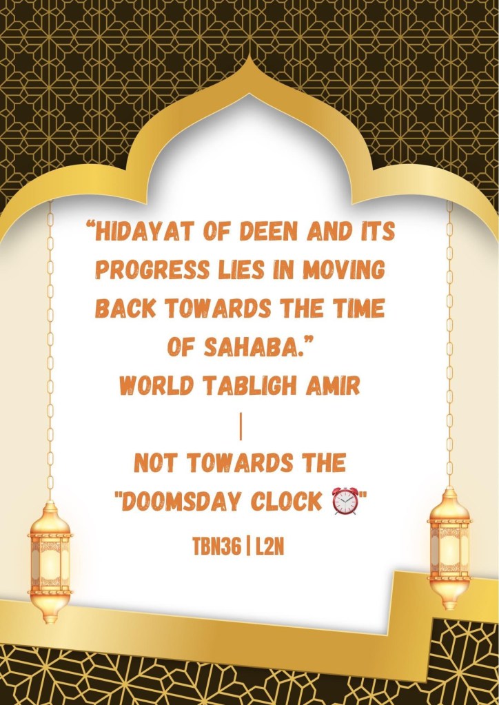 (1) ☀️Golden words – Hazrat Ji db Malfoozat – Hidayat of Deen and its progress lies in moving back towards the time of Sahaba. Not towards the “Doomsday Clock ⏰“☀️