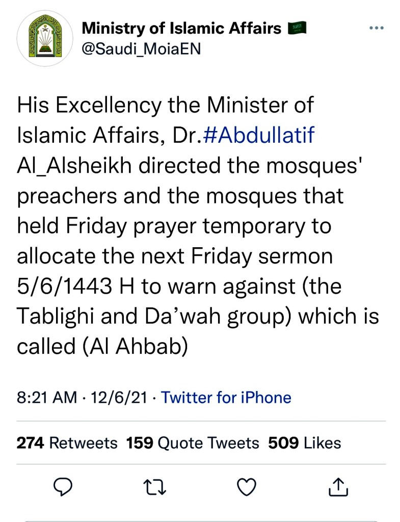 Saudi Ministry Of Jewish Affairs ban Tabligh Jama’at. It’s Will Suit To Salafi And Daesh(ISIS) Backed Saudi Government And MBS.