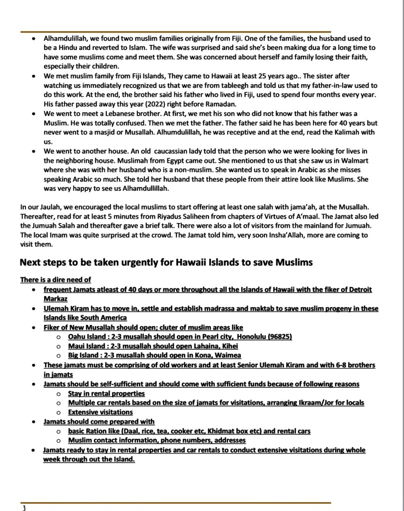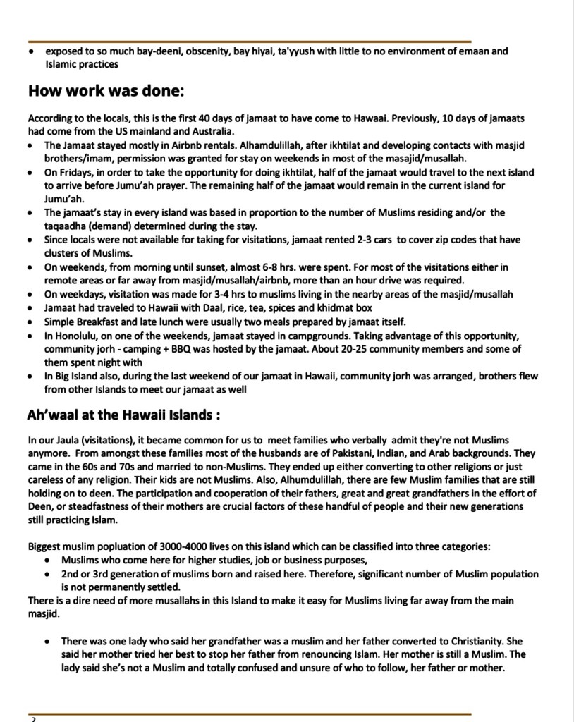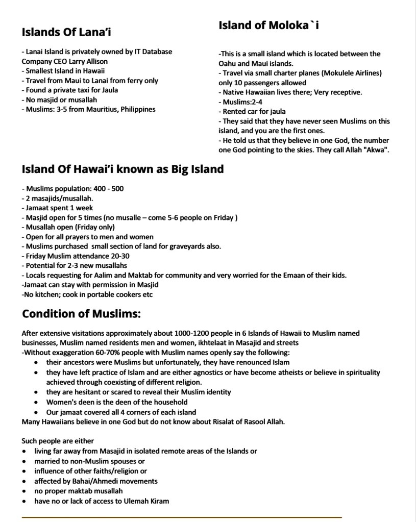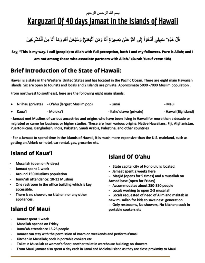 4 thoughts on “Karguzari Of 40 days Jamaat in the Islands of Hawaii
