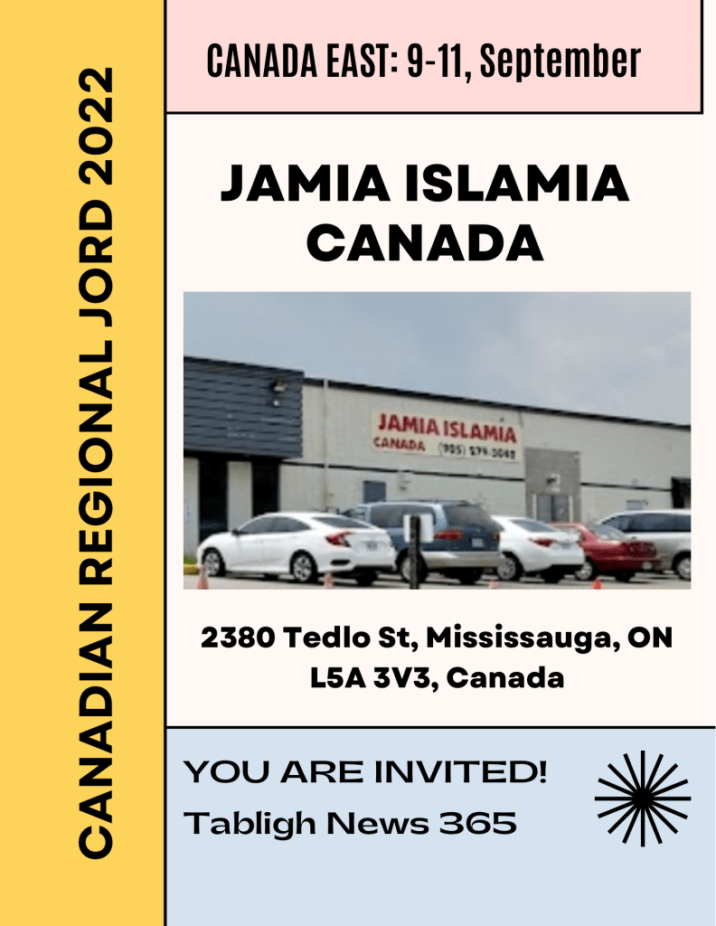 Thanks to Allah Almighty and His help, the closing dua & all Amal for the regional Jord in the Canada East Region has been successfully completed by the Supervision Of Nizamuddin Elder. Canadian, Pakistani Canadian, Arab sheikhs, Canadian Indian, Canadian Bangladeshi and others participated in this noble gathering. American and Canadian Shura’s also participated. Some Jamaat from USA also participated.