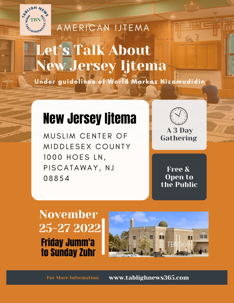 Alhamdulillah by the Fazal of Allah Subhana wata’aala New Jersey Ijtema’s date & venue’s finalized.