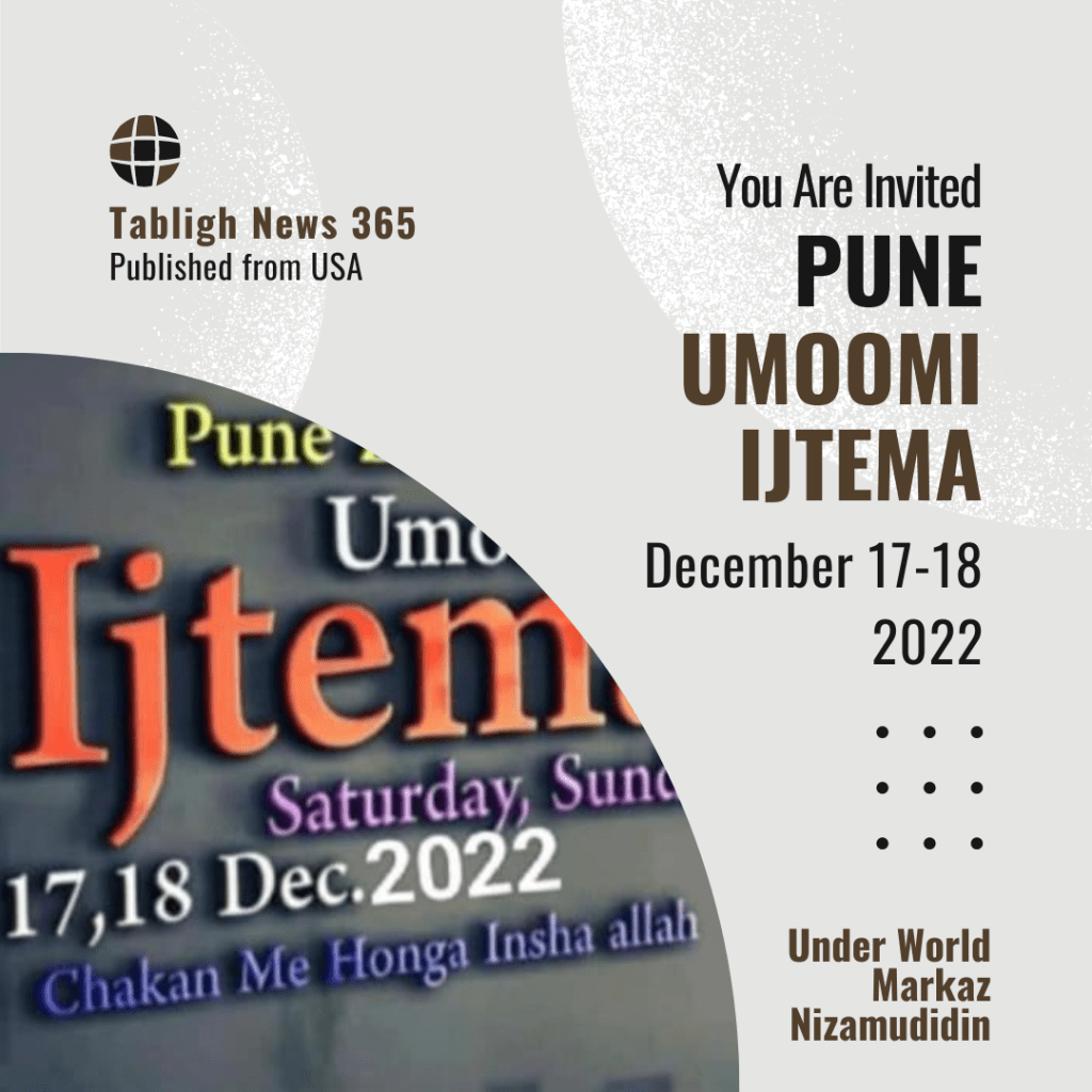 Alhamdulillah by the Fazal of Allah Subhana wata’aala Pune District Ijtema will be commence on 17-18 December, 2022.