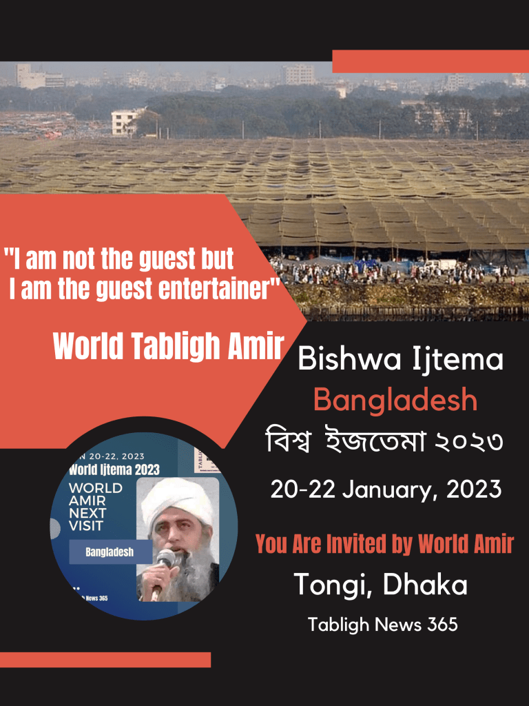 Responding to Hazratji’s invitation in last October 2022 at Malaysian World Mashwara, 8209 guests from 81 countries have reached Dhaka till today. This number will be exceeded before January 20. A total of 14,000 foreign guests from more than 115 countries are expected to participate in the “World Ijtema” to be held on January 20-22, 2023. Which will be the highest record in the history of World Ijtema. InshaAllah.