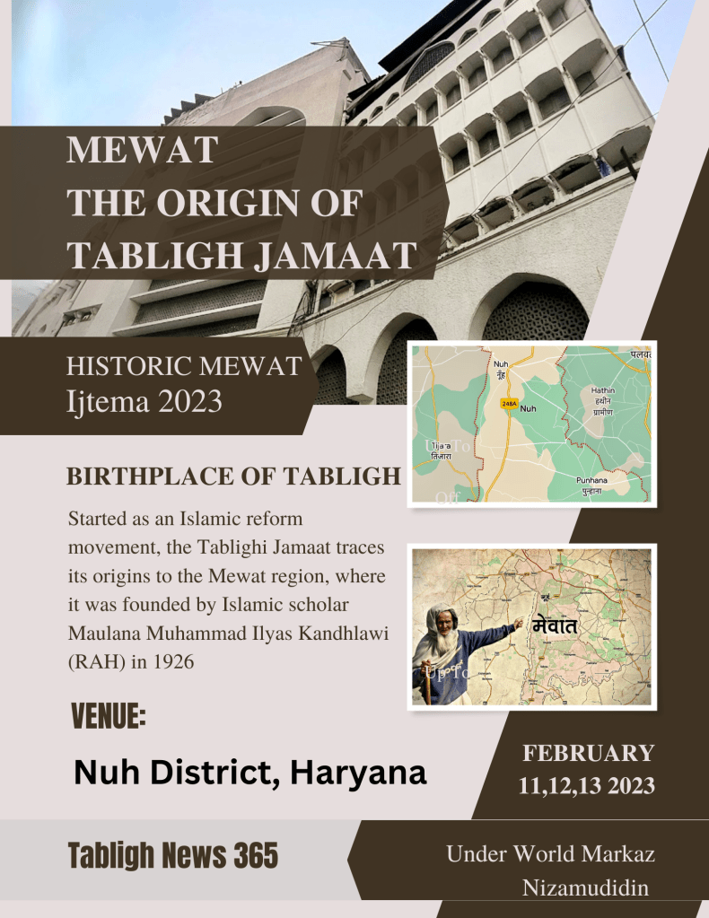 (1) Tabligh Jammat Birthplace City Historic Mewat Ijtema will be held from February 11-13, 2023 InshaAllah.