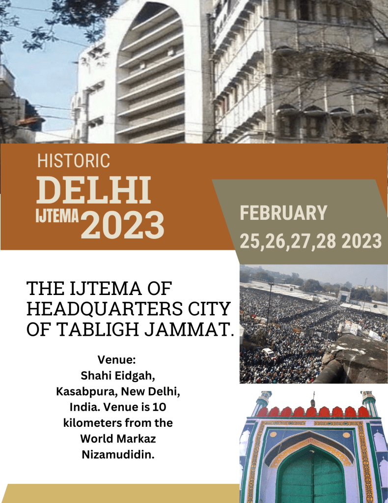 (2) Tabligh Jamaat Headquarters City Delhi Ummomi Ijtema will be held from February 25-28, 2023 InshaAllah.