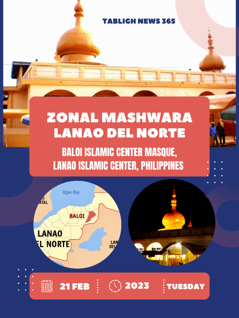 Alhamdulilla. Balo-i, Lanao del Norte, Philippines Zonal Mashwara Commencing Tomorrow on February 21, 2023 Tuesday, under the guidelines of World Markaz Nizamudidin InshaAllah.