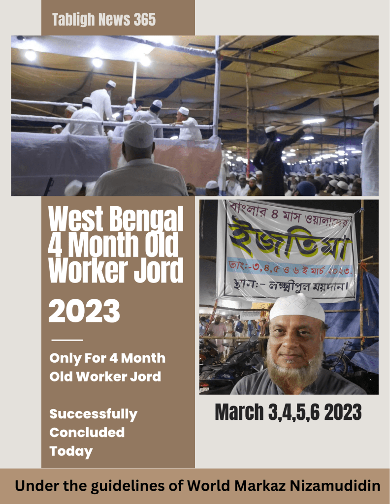 Alhamdulilla. After Covid-19’s restrictions 3 years later in its history a remote village at Bira, Indian state of West Bengal witnessed a rare sea of humanity that created an atmosphere of serenity and devotion with prayers and self-introspection – without any slogans. And the event was the four day All West Bengal Jord Ijtema hosted by Tablighi Jamaat from March 3, 2023 to March 6, 2023, which successfully concluded today.