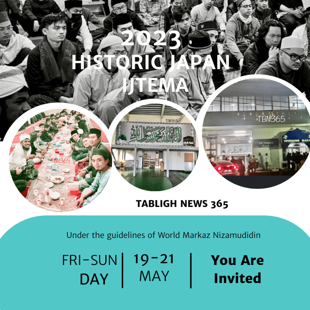 Below some pictures from Japan Ijtema 2023, which successfully concluded on May 21, 2023. The Shura of Japan Hazrat Abdul haq (Japanese), Many shura members of Malaysia markaz sri ptaling came, maulana Hamzah, maulana lukman, hj Abdullah cheong, hj zaid, dato syed, hj ismail, syaikh wan yusof and many more including the zumindar of Brunei as well, hj and g haddad with his jamaats Alhamdulillah.