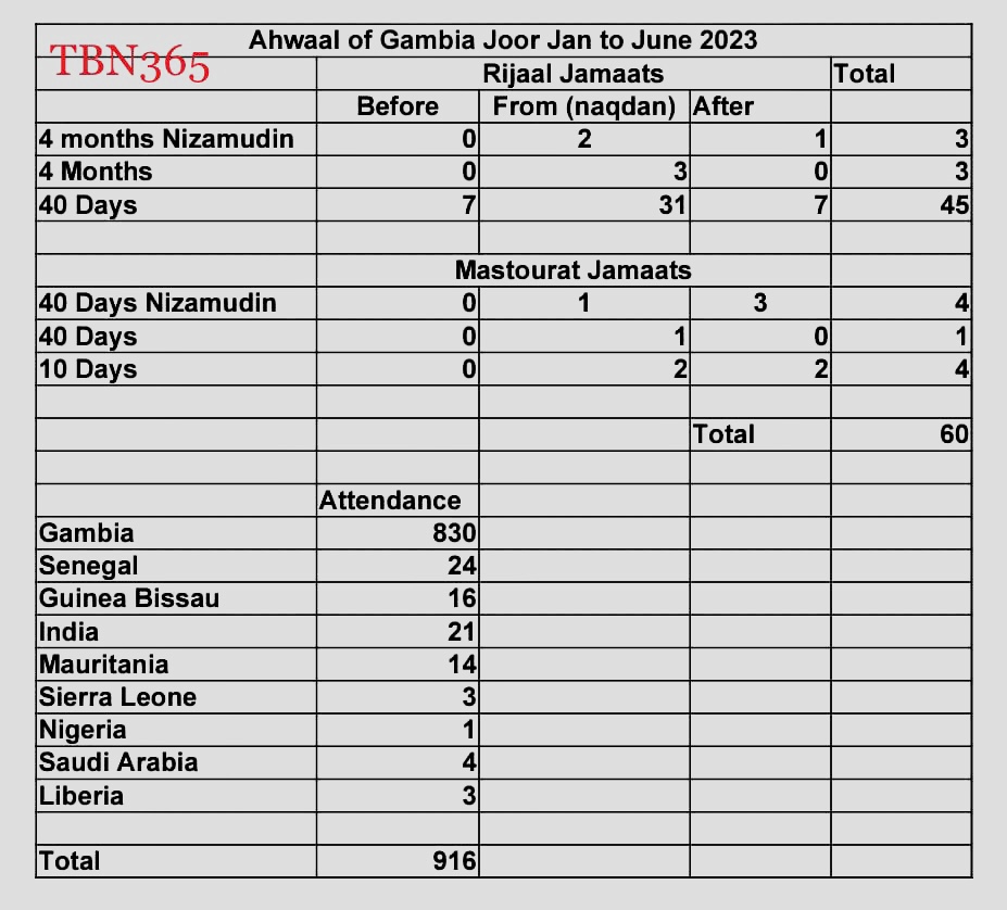 As you are aware that series of Consecutive Ijtemas Jods are currently taking place As per the Mashwera of World Markaz Nizamudidin across the globe. Gambia old workers Jord is the part of July last Jord. Alhamdulilla only in the Month of July there was total 63 Ijtema, Old Workers Jord & Mashwara including biggest Kul Hind Mashwara are going to complete InshaAllah.