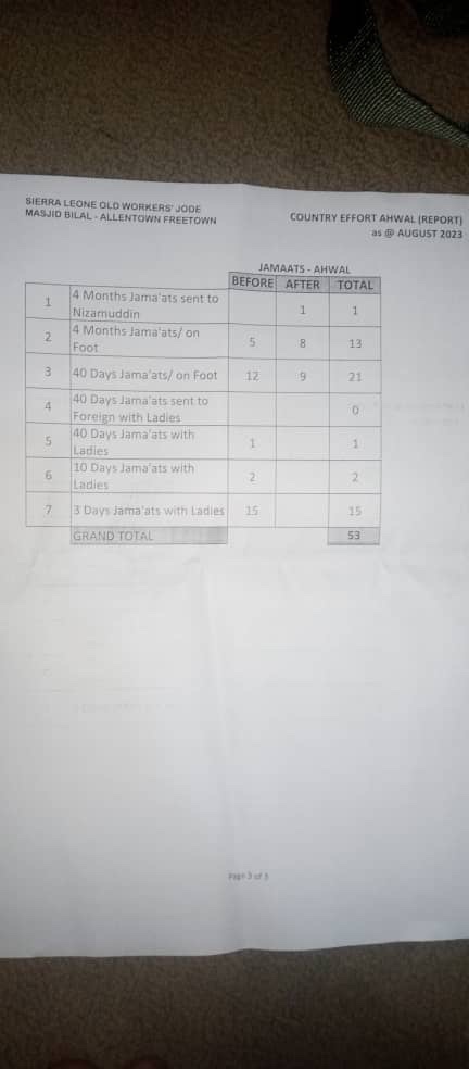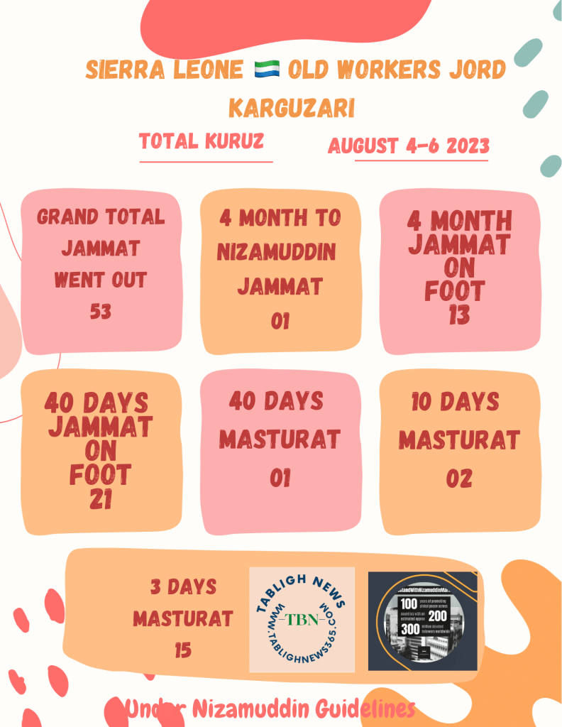 Alhamdulilla the Karguzari from West African first Old Workers Jord of Sierra Leone in the Month of August from 4-6, 2023, which is successfully concluded today under the guidelines of World Markaz Nizamuddin.