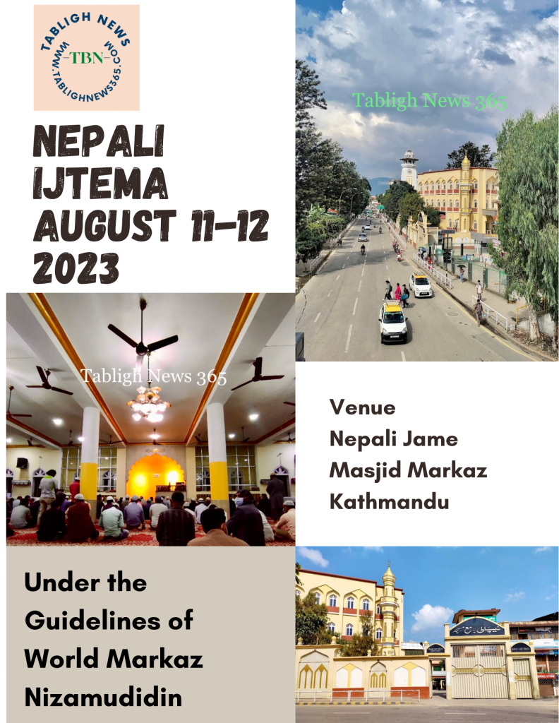 Alhamdulilla the Karguzari of Nepal Annual Ijtema, Kathmandu under the guidelines of Markaz Nizamudidin. Nepal Annual Ijtema began on August 11, 2023 & ends on today August 12, 2023 after Isha prayer followed by duaa InshaAllah. Final duaa will be by Maulana Jakir Sahib, Amir of Nepal. Near about 3000 people are participating. Below some pictures & one short video from the Ijtema. May Allah SWT accept & bless. Ameen.