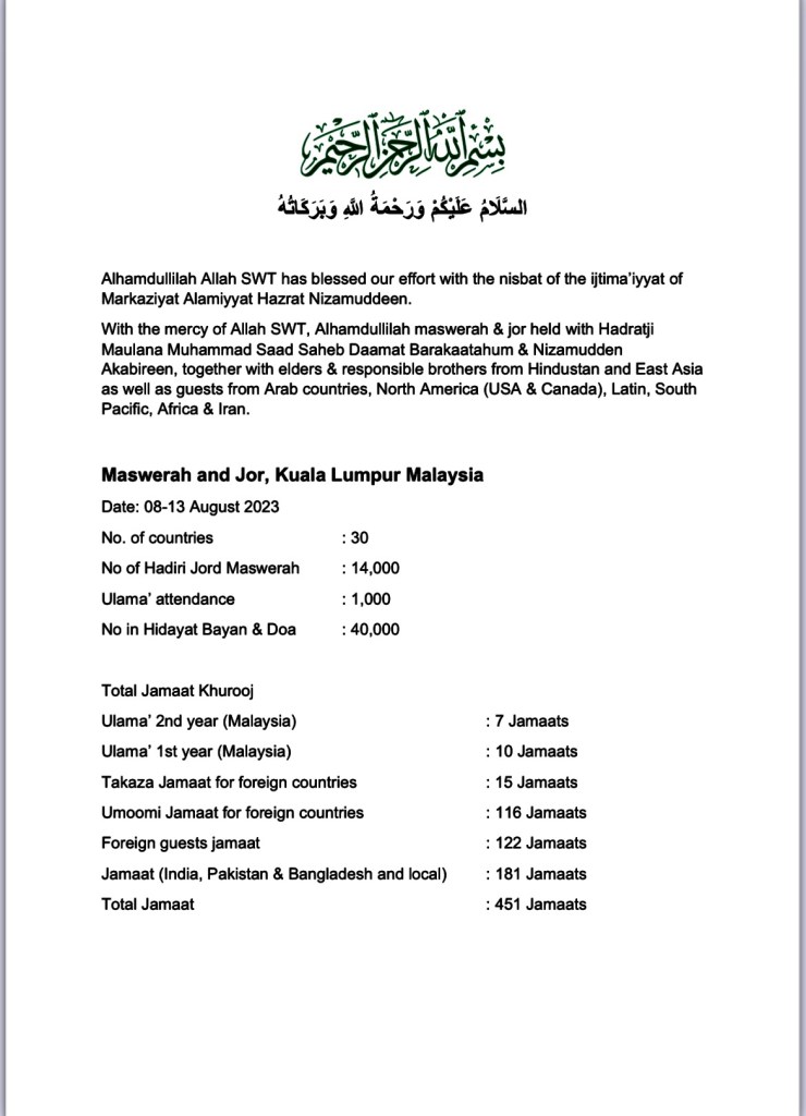 Number of attendance in Hidayat Bayan & Dua’a : 40,000