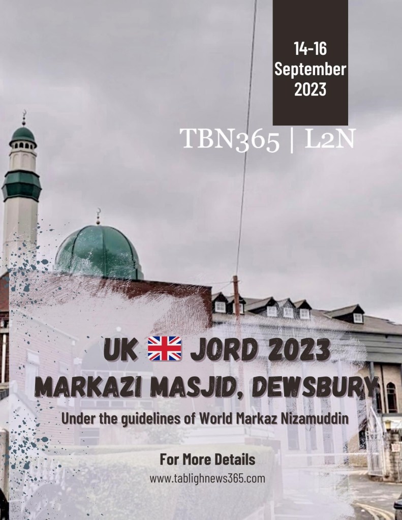 Another biggest gathering UK 🇬🇧 Jord which is scheduled to be held from September 14-16, 2023 at European & UK Central Markazi Masjid, Dewsbury, London. All UK old workers will be attending InshaAllah. Elder from Nizamuddin India & Malaysian Shura Faisal Hazrat Abdullah Cheong db already in UK. Many other countries including Pakistan Shura Maulana Waqas Karim sb along with Maulana Muaaz Karim sb, Maulana Imran Karim sb also be attending InshaAllah.