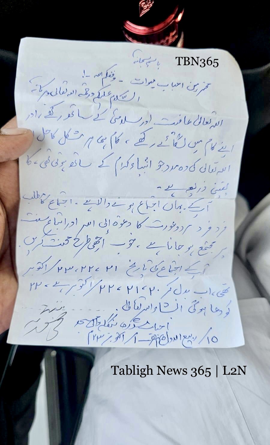 World Tablighi Amir Shaykh-ul-Hadith Hazrat Ji Ra’abe Maulana Muhammad Sa’ad Bin Harun Bin Yusuf Bin Ilyas As-Siddiqi Al-Kandhlawi db wrote a letter to Ahabab of Mewat regarding upcoming Mewat Ijtema.