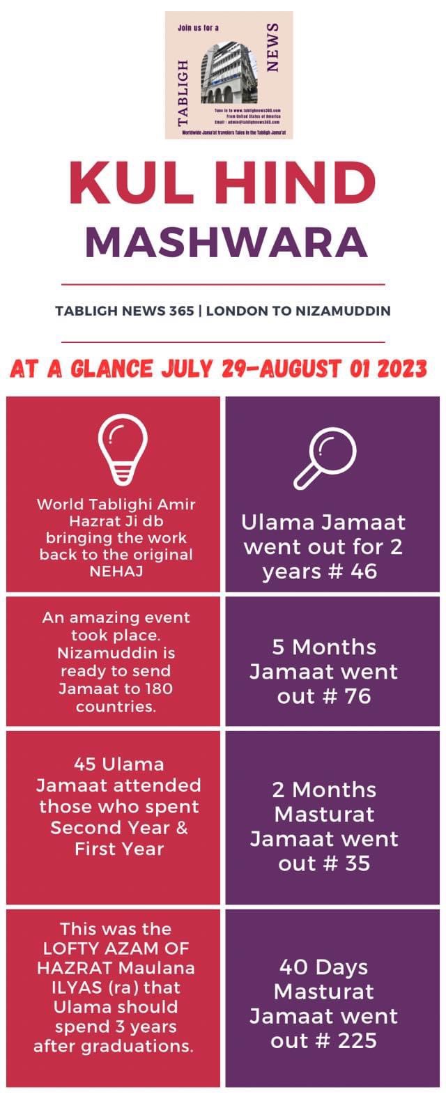 At a glance below chart of last Alami @ Kul Hind Mashwara, which was successfully concluded on last JULY 29-31 AND AUGUST 01 2023.