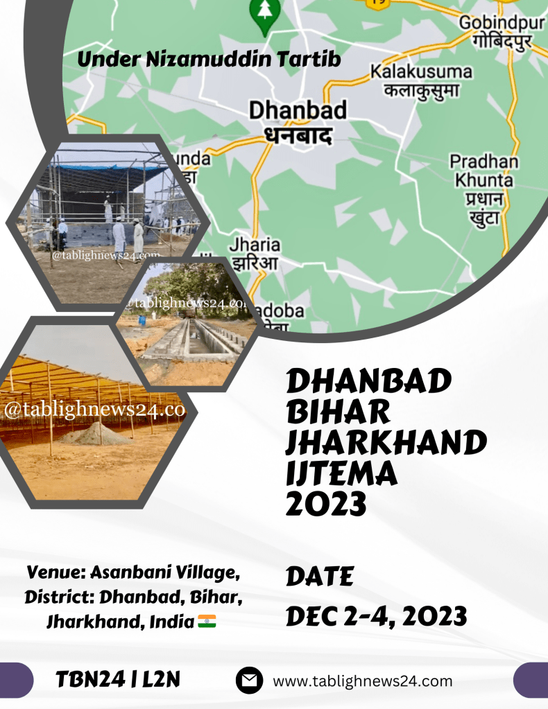 Alhamdulilla the Karguzari of Indian State Dhanbad Bihar Jharkhand Annual Old Workers & Ulema Jord Ijtema from December 2-4, 2023, under the direct supervision of Nizamuddin Akabirs & Ulema. It’s very famous & one of the biggest Ijtema in India.