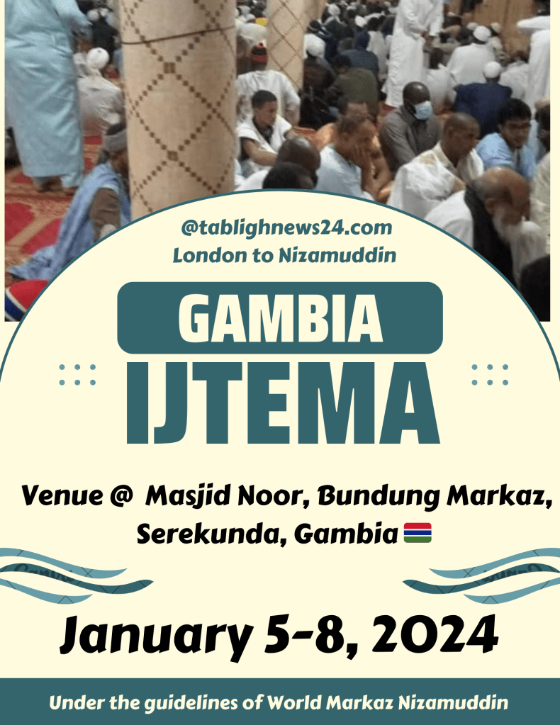 Alhamdulilla. Muslim majority West African country Gambia’s Annual Ijtema will be held from January 5-8, 2024 under the guidelines of World Markaz Nizamuddin InshaAllah.