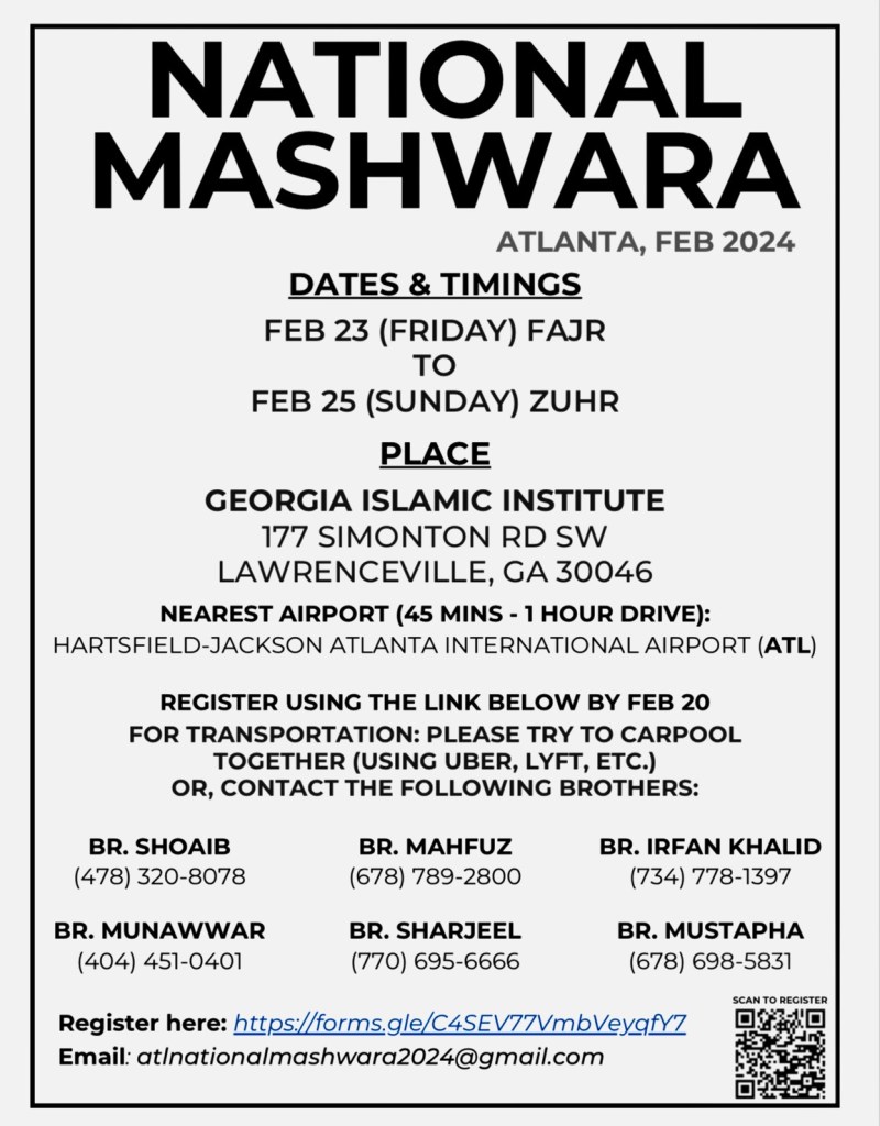 February 23rd 2024 Friday Fajr to February 25th 2024 Sunday Jhur. Below the instructions how to register & contact details.