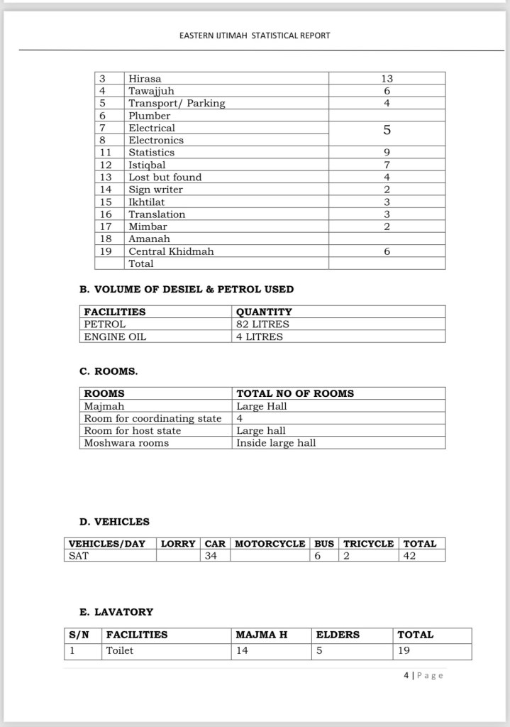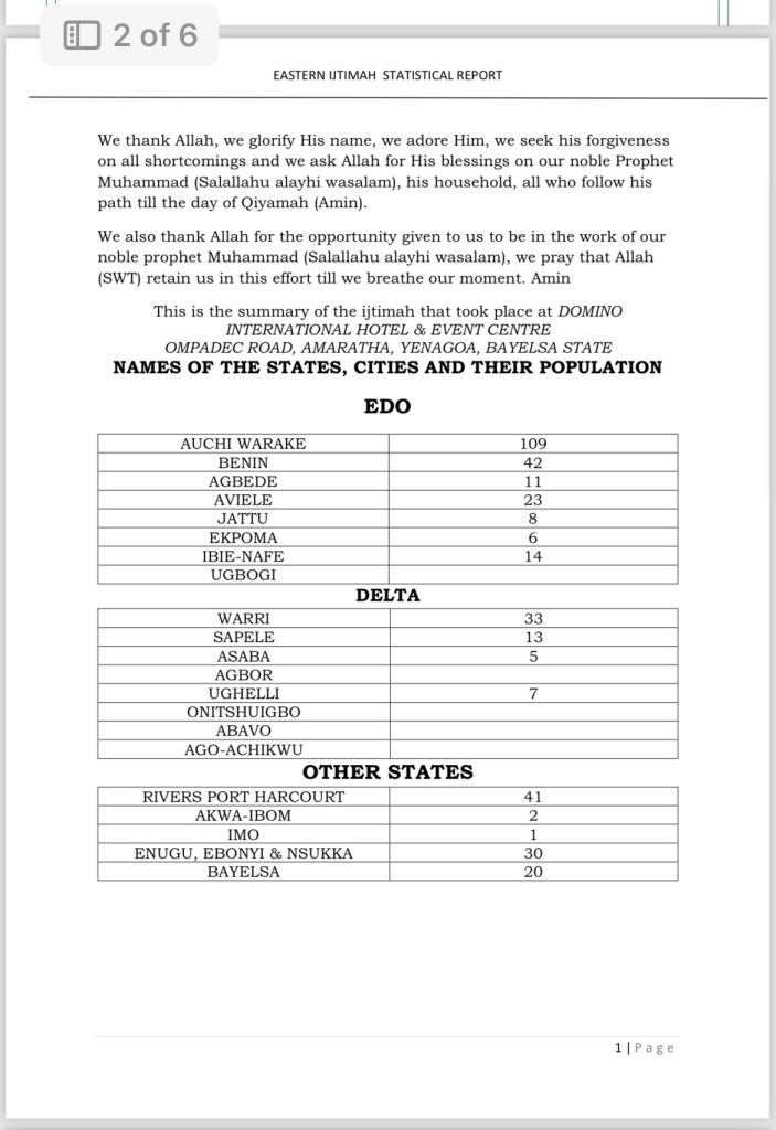 Alhamdulilla below the Karguzari Sheet from Nigeria π³π¬ Eastern States Annual Ijtema, from Feb 01- 04, 2024 at Yenagoa, Bayelsa State, under the guidelines of World Markaz Nizamuddin. It was a Zone Ijtema. Total attendance 462. EDO, DELTA & Some other states of Nigeria were attending. MasaAllah total 36 cash Jammat going out for Khuruj. Below a short video.