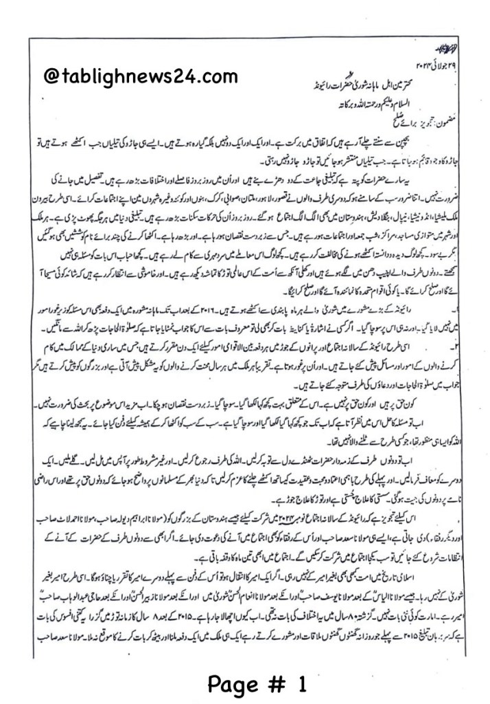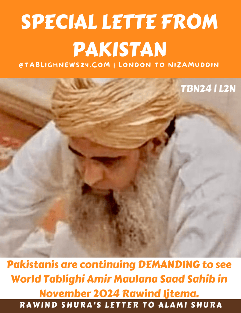 Tabligh News Special Report. Protests against the illegal existence of “Almi Shura” from Pakistan itself. Below the Letter From Current Rawind Shura’s to their Alami Shura. Pakistanis want to see World Tablighi Amir Maulana Saad Sahib db in November 2024 Rawind Ijtema.
