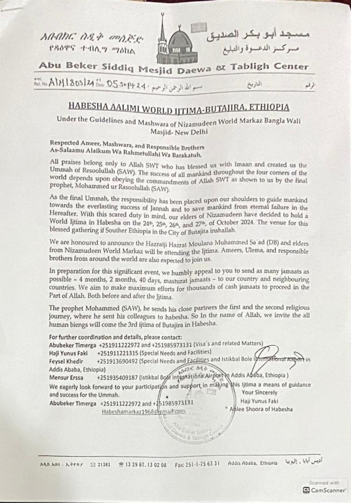 Below the invitation letter for Habesha World Ijtema 2024: