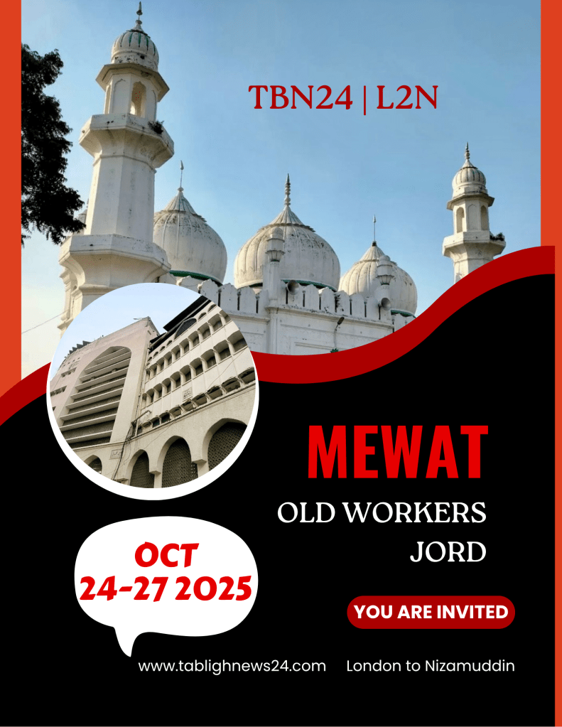 Alhamdulilla Mewat Old Workers Jord is confirmed. Upcoming Mewat Old Workers Jord will be held on October 24,25,26,27 2025 InshaAllah, under the guidelines of World Markaz Nizamuddin.