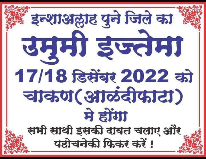 Allahu Akbar! Breeze of Hidaayah in Historic Pune Umommi Ijtema 17-18 December, 2022 MasaAllah What an amazing sight inside tent & outside in Ijtema ground Chakan, Pune, India where thousands upon thousands participated in two days Ijtema. More than 2 lakh participated. 1000 and above Ulama attend this noble gathering. 2 Ulama Jamaat going outContinue reading “Historic Pune Ijtema Successfully Concluded today”
