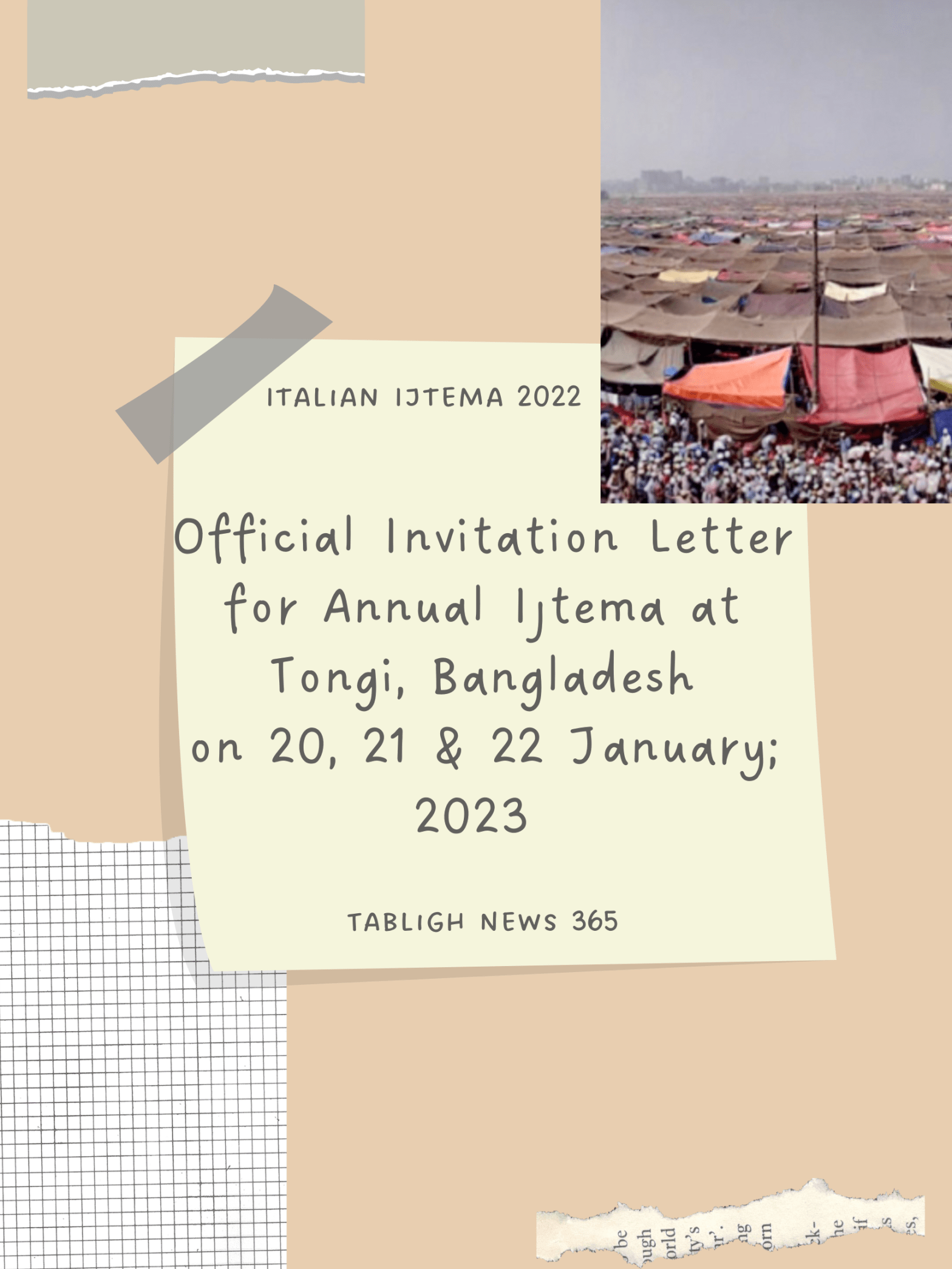 Official Invitation Letter for Annual Ijtema at Tongi, Bangladesh.