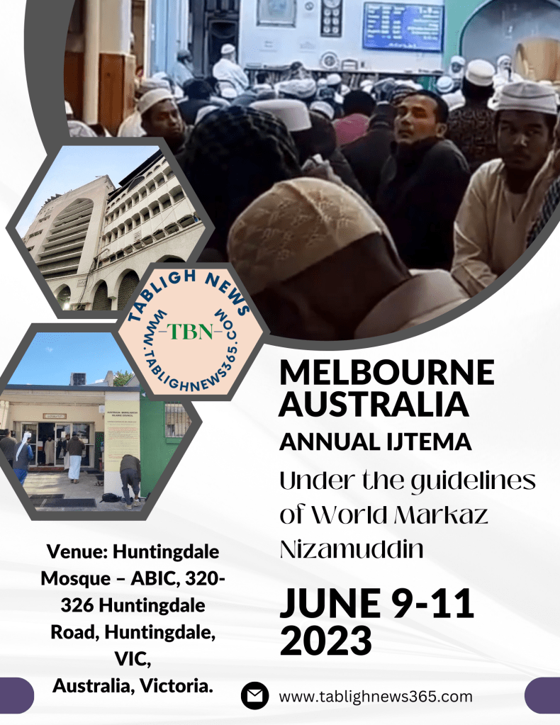Alhamdulilla. Upcoming “VICTORIAN IJTEMA 2023” MELBOURNE, AUSTRALIA will be commence on June 9-11 2023 & ends on June 12 morning followed by Dua InshaAllah.
