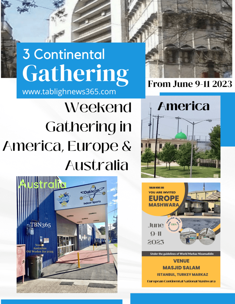 This weekend, under the guidance of Nizamuddin, the Dayee of Deen Islam are meeting simultaneously in 3 continents, America, Europe and Australia InshaAllah from June 9-12, 2023.