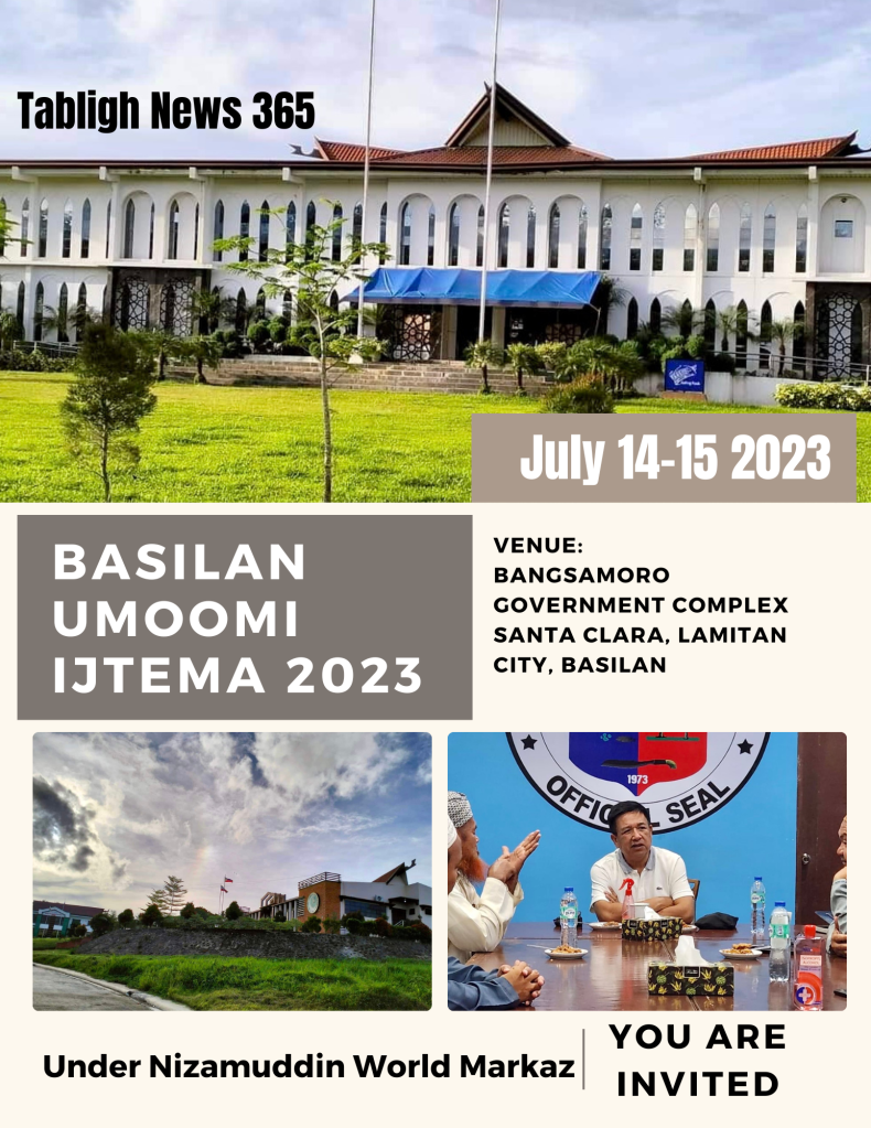 Alhamdulilla. Upcoming Basilan Zone Ummomi Ijtema will be commence on July 14-15 2023 at Bangsamoro Government Complex at Sta Clara Lamitan City, Basilan, under the guidelines of World Markaz Nizamuddin.