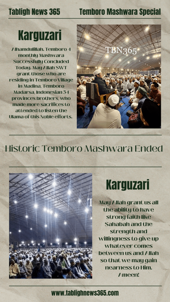 Alhamdulillah. Temboro 4 monthly Mashwara Successfully Concluded Today. May Allah SWT grant those who are residing in Temboro Village in Madina, Temboro Madarsa, Indonesian 34 provinces brothers, who made more sacrifices to attended to listen the Ulama of this Noble efforts. More than 20 thousand people gathered at the last day.