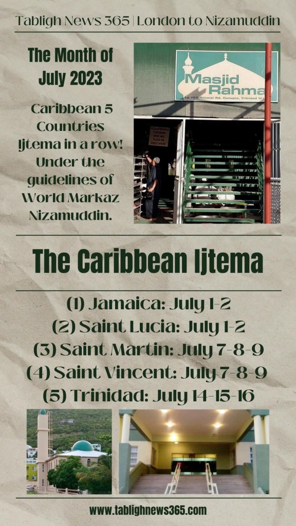 Alhamdulilla. It’s the infinite mercy from Allah SWT that Two Caribbean countries, One African Country’s & One Asian Country’s Annual Ijtema are going to be held in the same day under the guidelines of World Markaz Nizamuddin.