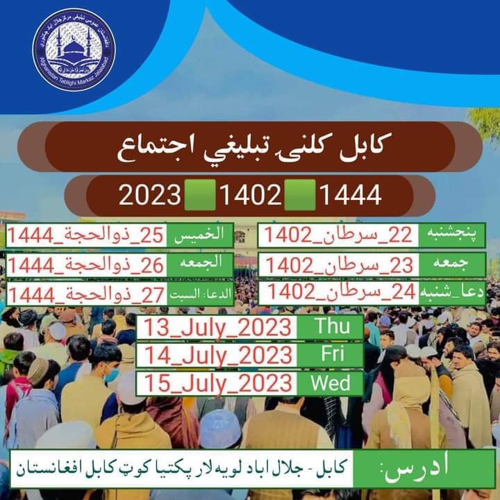 (7) Kabul Annual Ijtema : July 13-15 2023 at Jalalabad Highway Paktia Kot Kabul Afghanistan.