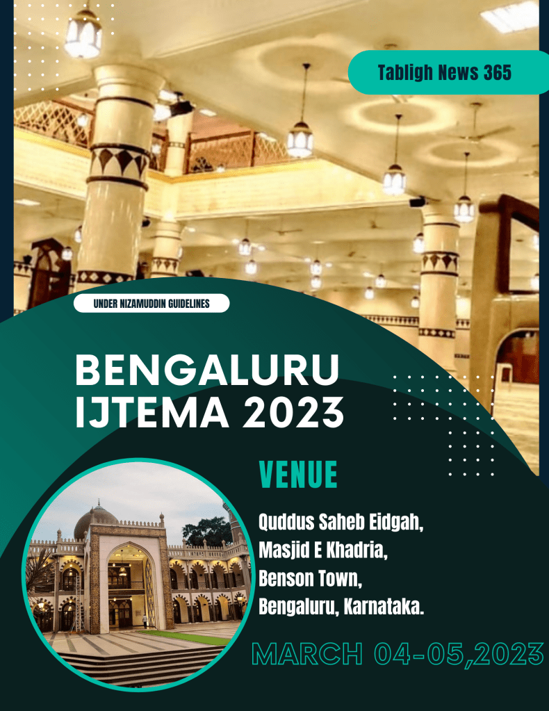 Alhamdulilla. Bengaluru @ Bangalore Annual Ijtema 2023 (March 4-5) begins today & tomorrow after Magrib will be the final dua inshaAllah, under the guidelines of World Markaz Nizamudidin.