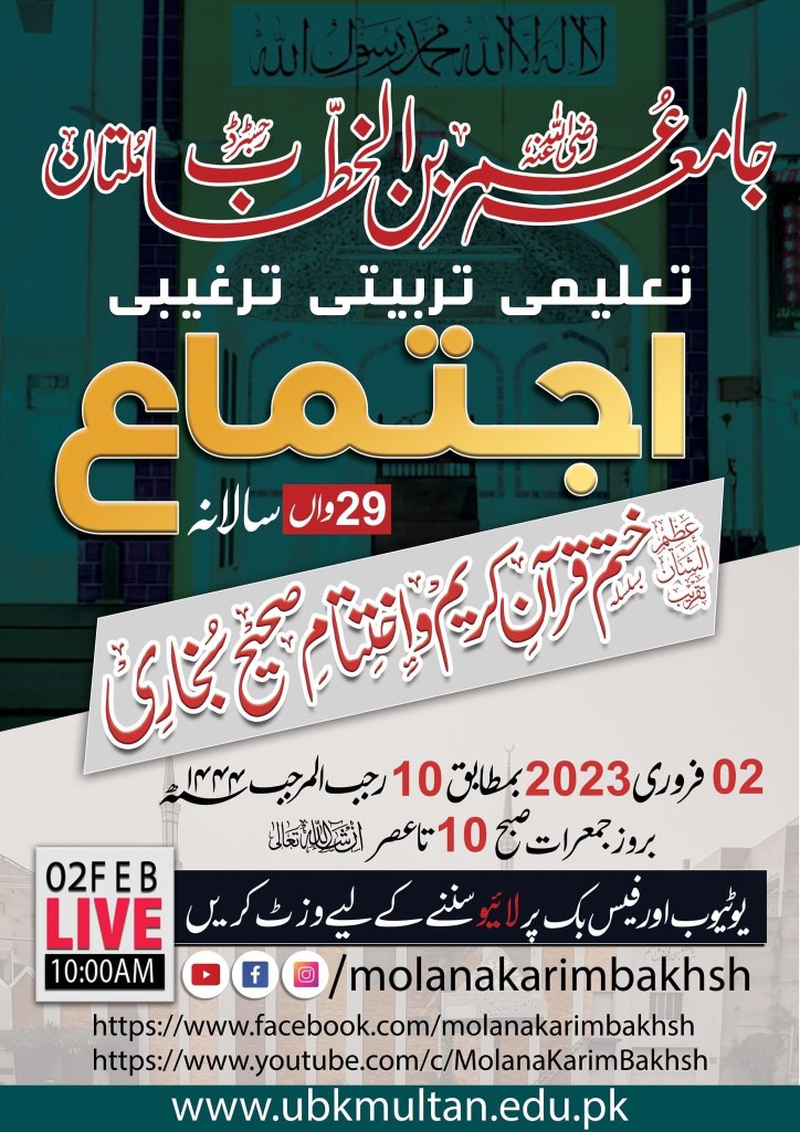 ✔️ Saturday, 25th February 2023 : -After Fajar: Maulana shareef 10:00am Taleem Ulama Me Baat Hazrat ji 10:00Am to 12:00pm