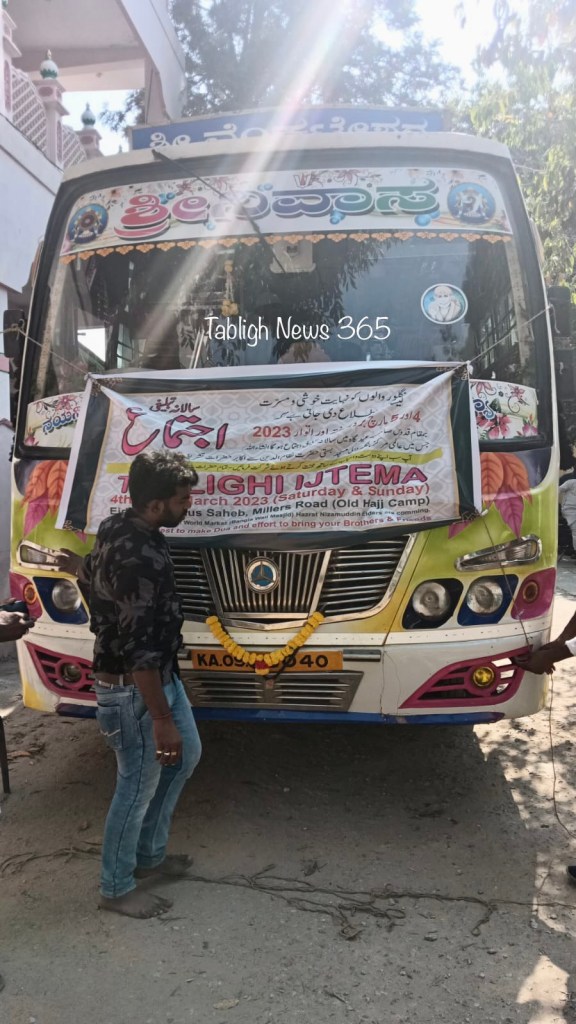 Alhamdulilla. By the grace of Almighty, Bengaluru Ijtema passed its first day. Below some video from Ijtema. People from Karnataka state still coming towards Ijtema. A short video which showed people coming by bus. There’s some pictures also. Nizamudidin Akabir Mufti Abdul Wahab Sahib is the Zimmader for this noble gathering. May Allah SWT accept the Ijtema. Ameen.