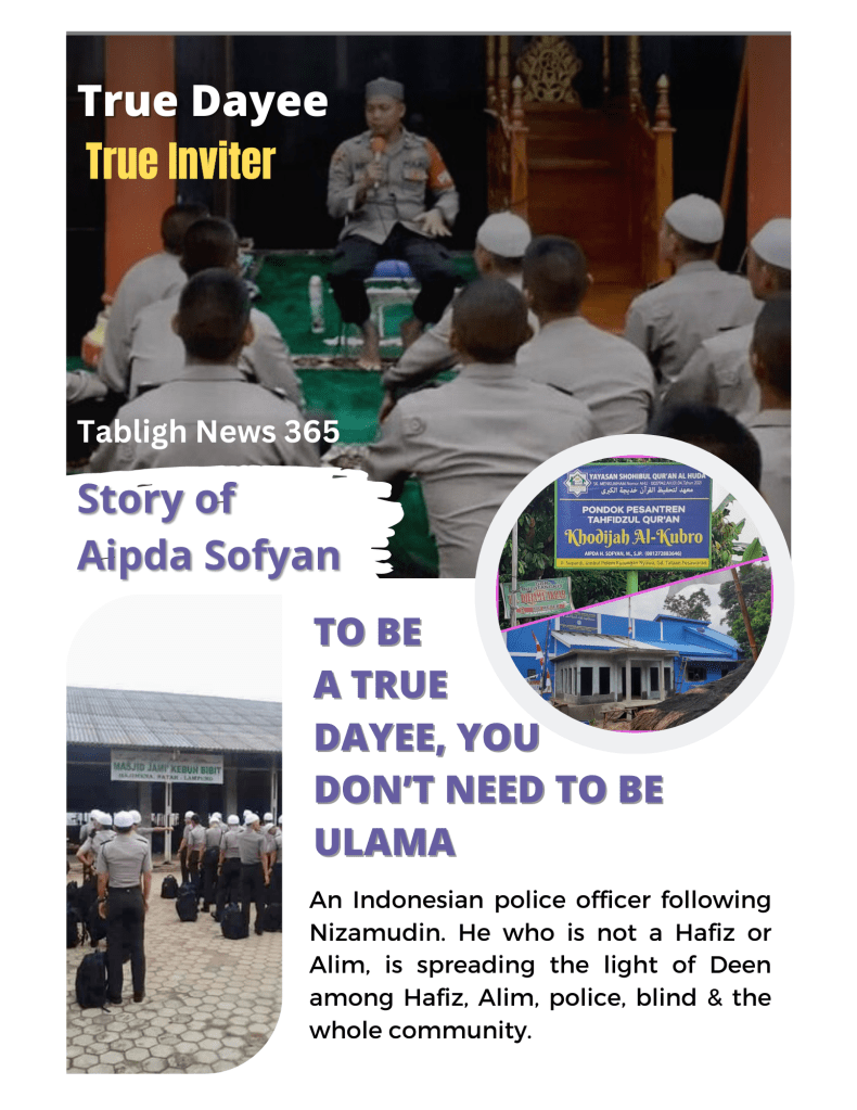 This is the story of Aipda Sofyan Mu’arif, who is now working as a Police Officer in Indonesian National Police at Lampung Police Department. He is true followers of World Markaz Nizamudidin & also involved with the work of Da’waah. He who is not a Hafiz or Alim but continues spreading the light of Deen among Hafiz, Alim, Police, Blind people, as well as the whole community.