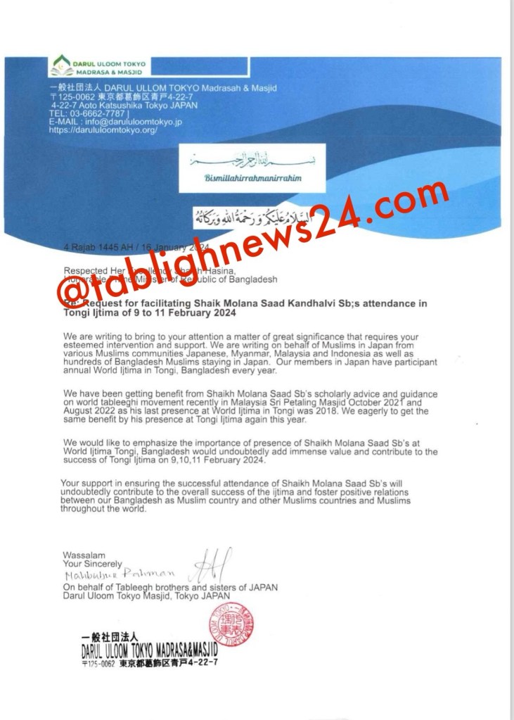 Tabligh News 24 contacted the secretary of the concerned ministry to confirm the matter. Out of the 55 countries, 2 countries (1) Japan (2) Nigeria’s letters are highlighted below: