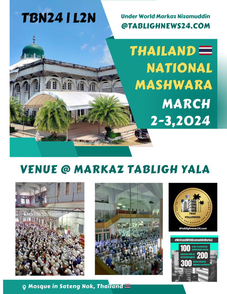 Alhamdulilla the Karguzari of Thailand 🇹🇭 3 Monthly National Mashwara. Thailand National Mashwara was held at Yala Markaz from June 01-02 2024 under the guidelines of World Markaz Nizamuddin. About 4 thousands Ahabab from different provinces was attended.