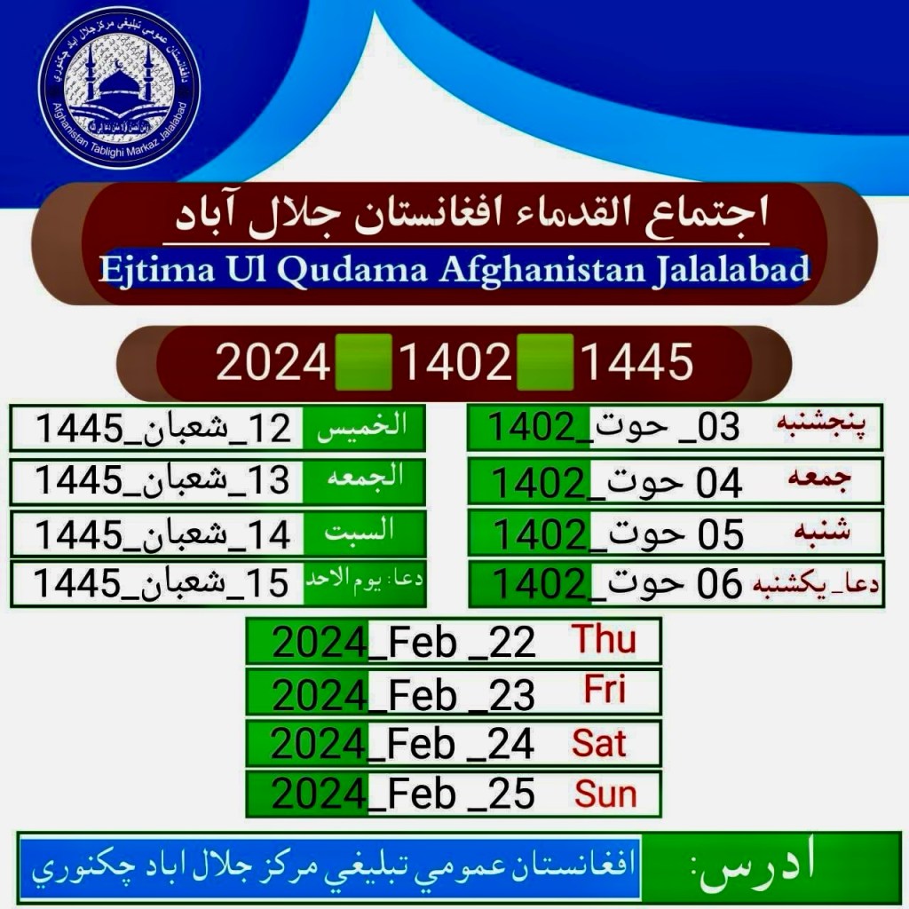 Alhamdulilla the Karguzari of Last Week/Weekend Worldwide Ijtema/Mashwara gathering under the guidelines of World Markaz Nizamuddin. There are 6 (Six) Major gatherings are commencing in the last week/weekend in the month of January 2024.