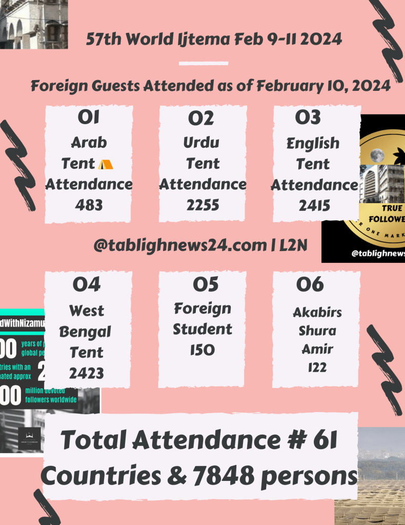 It’s to be noted that, after performing Umrah from December 29, 2023 to January 23, 2024, World Tablighi Amir db returned to the World Markaz on January 24, 2024.