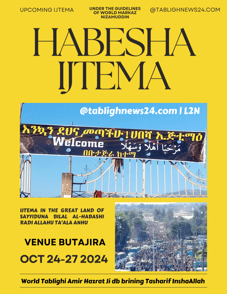 Alhamdulilla. Ulema & Ahabab from African continental are ready for World Tablighi Amir. There will be two historic gathering in African Continental. It’s the first time in history. World Tablighi Amir Hazrat Ji db will brining tashrif in South Africa & Ethiopia in the middle of the month October 2024 InshaAllah.