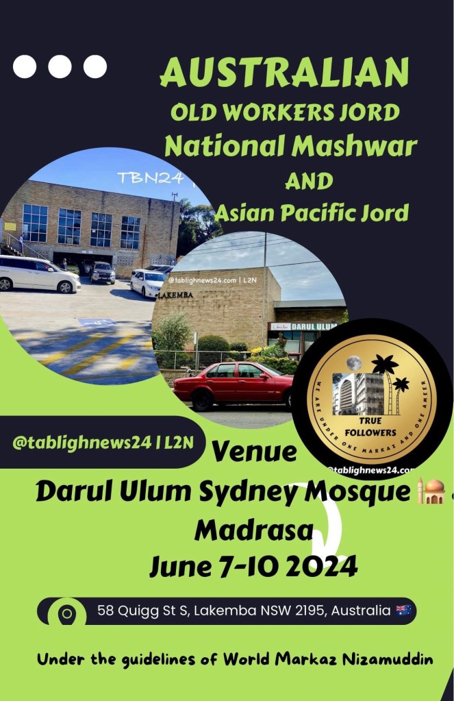 Alhamdulilla the Karguzari of Australian Old Workers Jord, National Mashwara & Asian Pacific Jord 2024 under the guidelines of World Markaz Nizamuddin from June 7-10, 2024 InshaAllah.