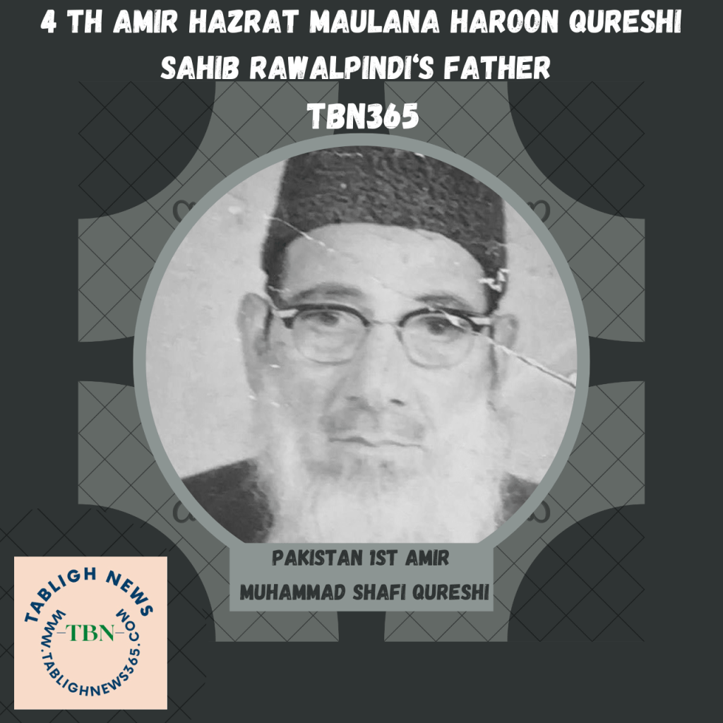 (4) The fourth Amir Maulana Haroon Qureshi db is the son of Muhammad Shafi Qureshi (RAH) the First Amir of Pakistan. The fourth Amir was appointed by Asian Mashwara at Markaz Sri Petaling, Malaysia. He was appointed by World Tablighi Amir.