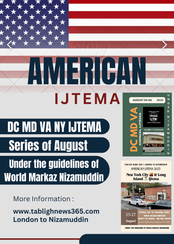 Alhamdulillah by the Fazal of Allah Subhana wa ta’aala Muslim in America are going to experience two Ijtema in the same day. One will be the biggest one & other will be the smallest one. Biggest one Buffalo Halaqa & Smallest one New Jersey Halaqa. Both Ijtema will be held from July 14-16, 2023 InshaAllah.